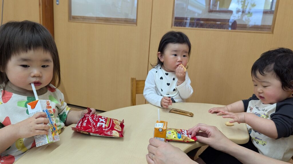令和7年度も子どもたちの笑顔あふれる豊かな1年となりました。年度最終日、平和な日々にも感謝し預かっていた備蓄のお菓子を食べました。