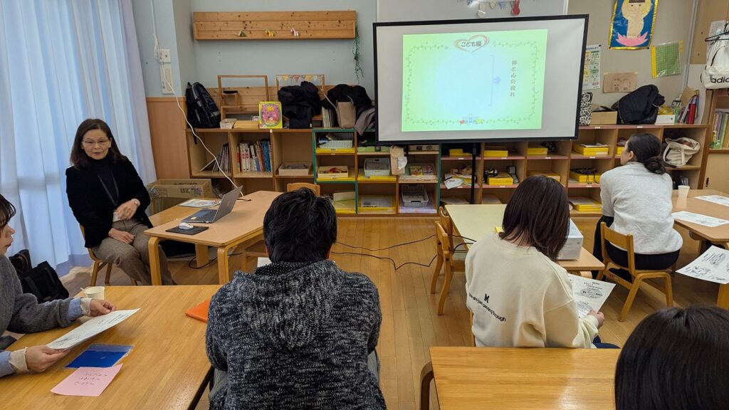 2月18日 保護者を園に招待し、年長さんが司会進行をする2月の誕生会・お楽しみ会をみていただきました。子どもたちの自信あふれる堂々とした姿を保護者・園児・職員みんなで共有することができた一日となりました。午後からは、保護者の方との懇談会や研修会と充実した時間となりました。