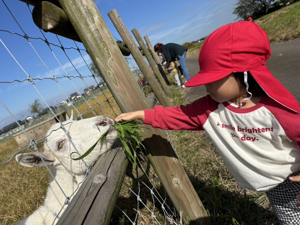 上兵庫にある【ヤギと親水公園】にお弁当を持って行ってきました♪ヤギに餌やりもできました!!近くのコスモス畑も満開!とても楽しい園外保育になりました♪