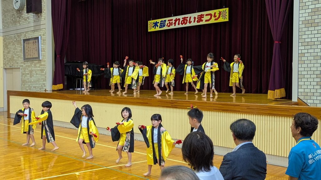 木部地区のまつりのオープニングをさくら組・ひまわり組が【こどもよさこい】で飾りました!たくさんのお客さんの前でも堂々とした姿に感心✨当日は地域の人との交流も楽しむことができました。