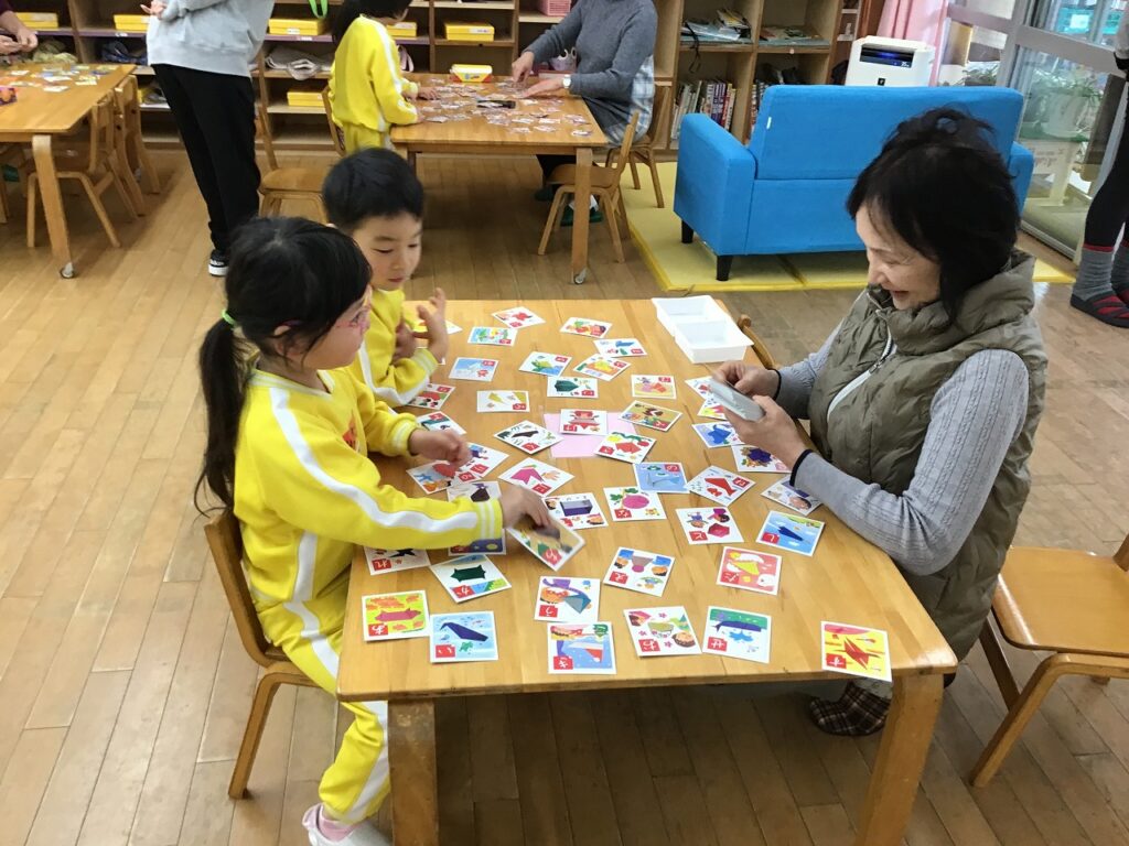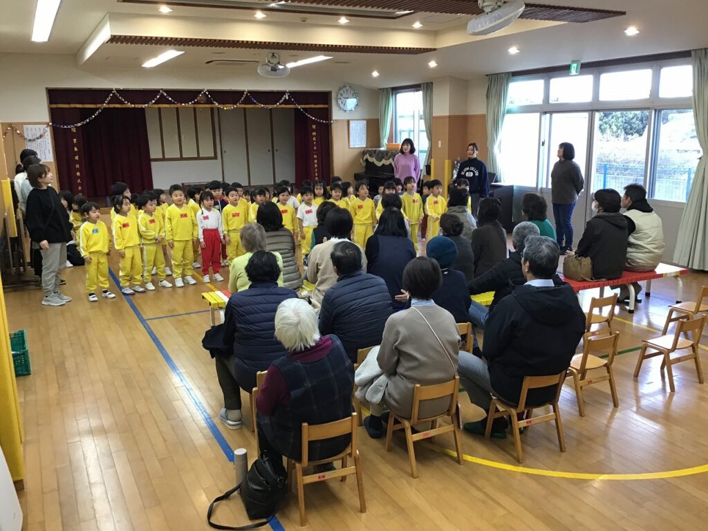 今年一年もみんなが沢山の笑顔で過ごせるように、【一年のスタートを笑顔で!】と新年おめでとう会を開催しました。おめでとう会では協力していただける祖父母の方のお手伝いもあり、昔ながらのコマ回しや福笑いのあそびを一緒に楽しむことができました。今年も笑顔多き一年のスタートがきれました!