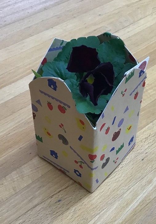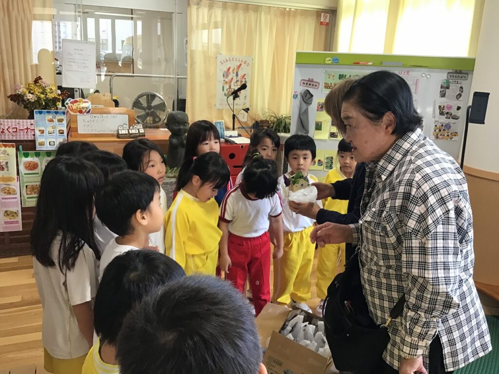 坂井市婦人福祉協議会の皆さんから市内年長児対象に花ポットの贈呈がありました。来園してお花を届けてくださいました。