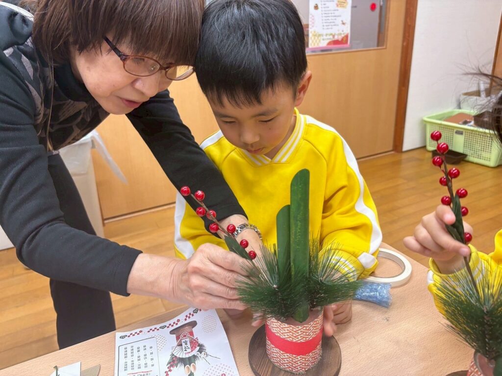 坂井市木部地区のふくしの会の皆さんが、今年も門松づくりを教えてくださいました。優しく作り方を伝えてくれ、子どもたちにとっても楽しい時間となりました。